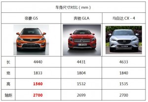 帝豪GS/奔驰GLA/马自达CX-4横评